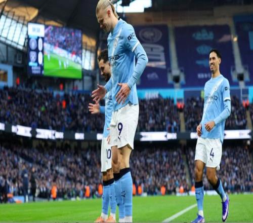 第5分钟,曼城在左路打出流畅配合,接到福登的传球,哈兰德的射门被阿雷奥拉挡出,跟进补射,将球打进死角,进球后的哈兰德跳起了机械舞。